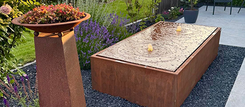 Live erleben: Der Schaugarten der Garten ist Urlaub GmbH in 93352 Rohr (Niederbayern) mit großem Wasserspiel im Eingangsbereich, Bauerngarten mit Kräuterschnecke und angrenzendem Outdoorliving-Bereich ist immer einen Besuch wert.