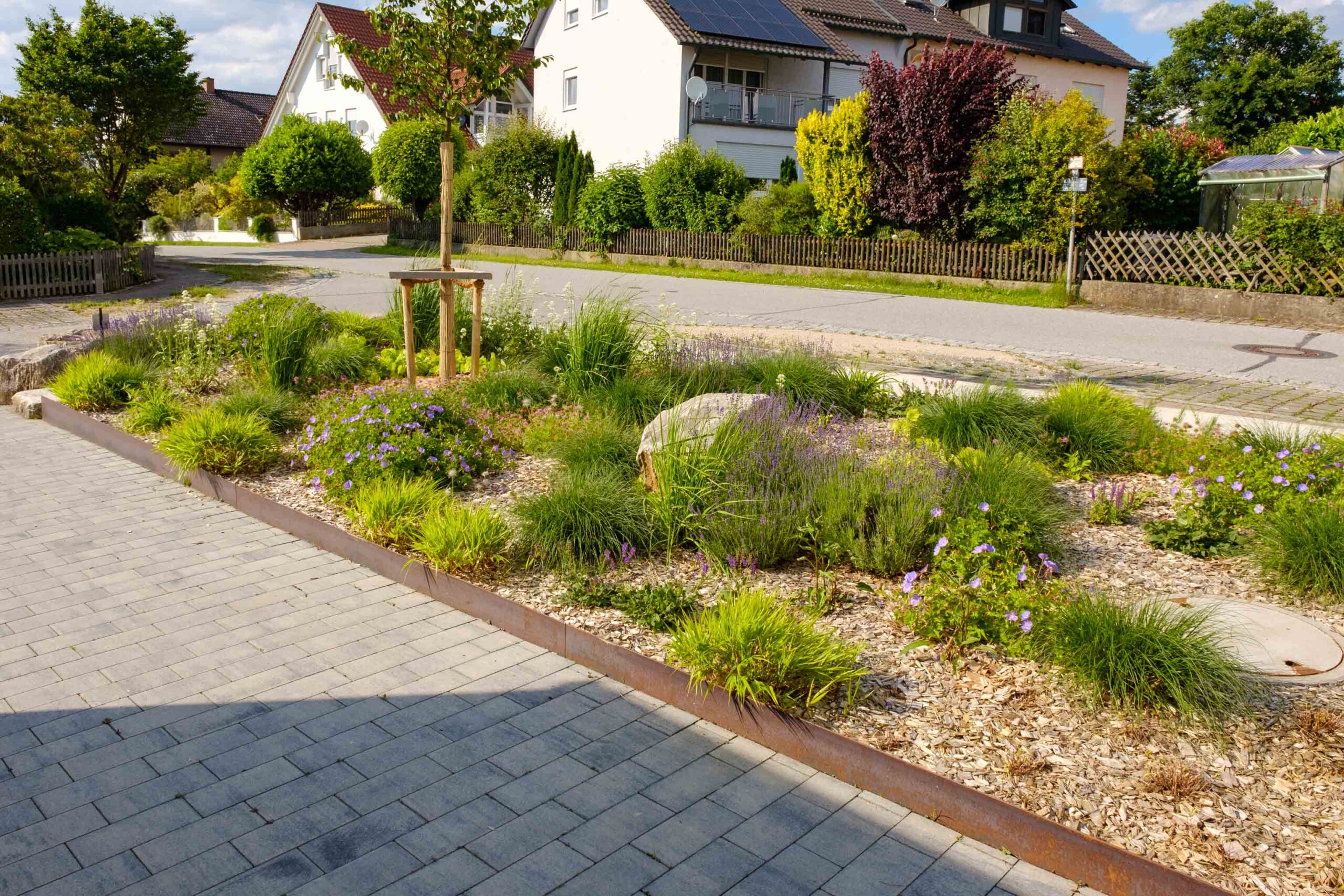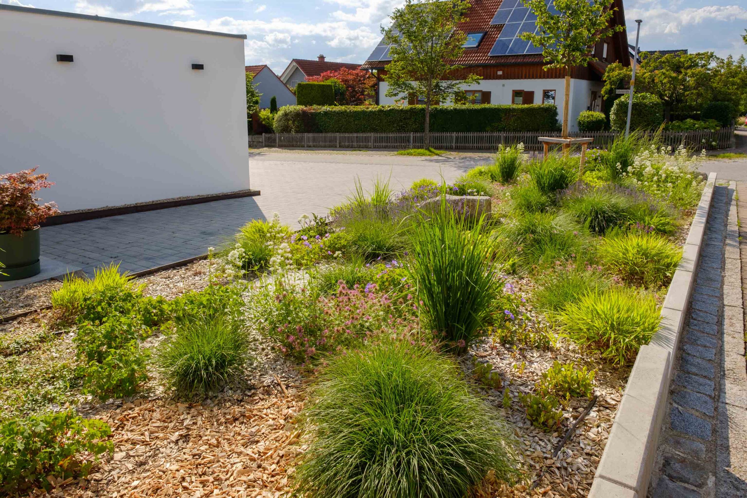 - Förderung der Biodiversität durch einheimische und trockenheitsverträgliche Pflanzenarten