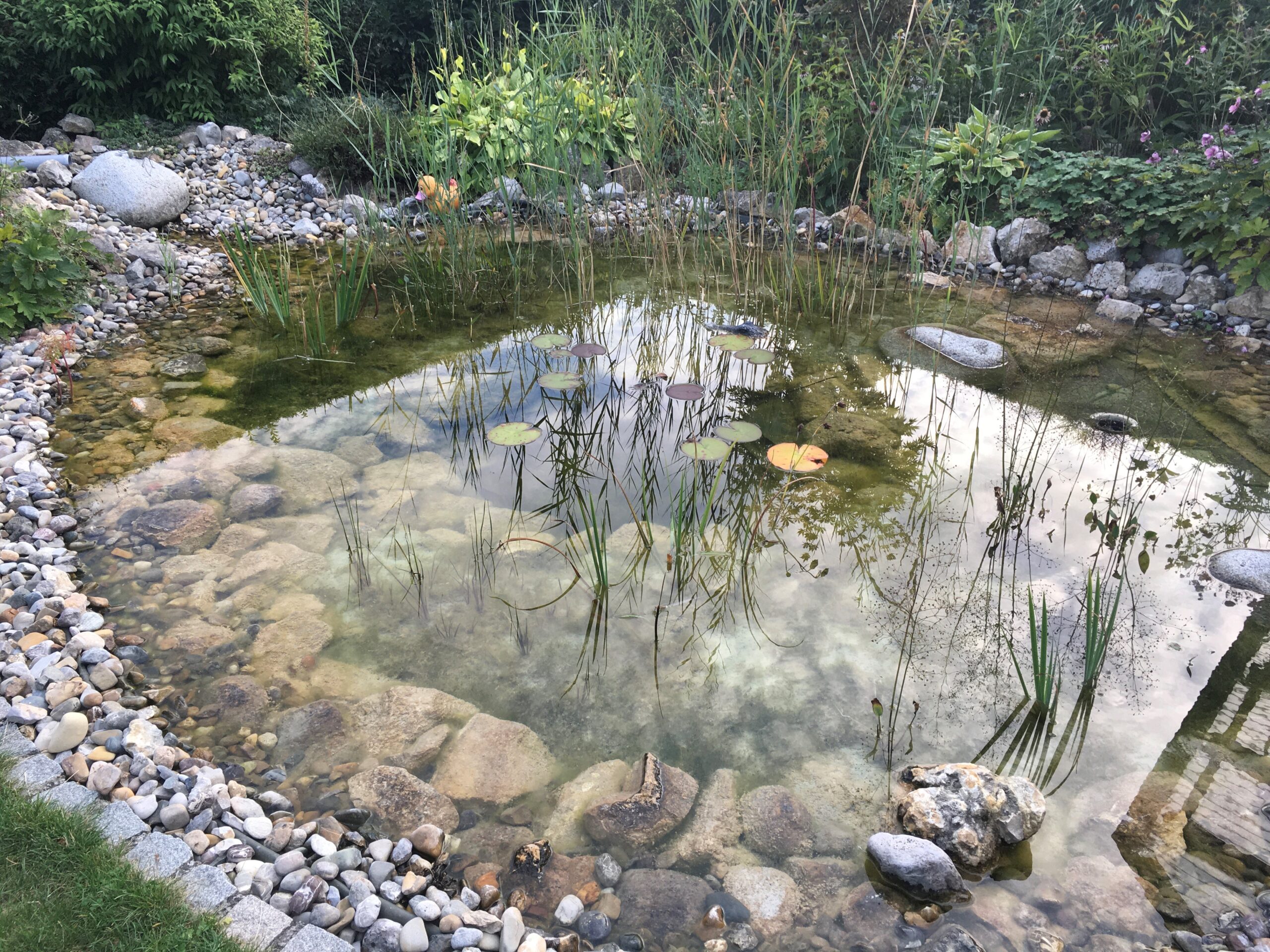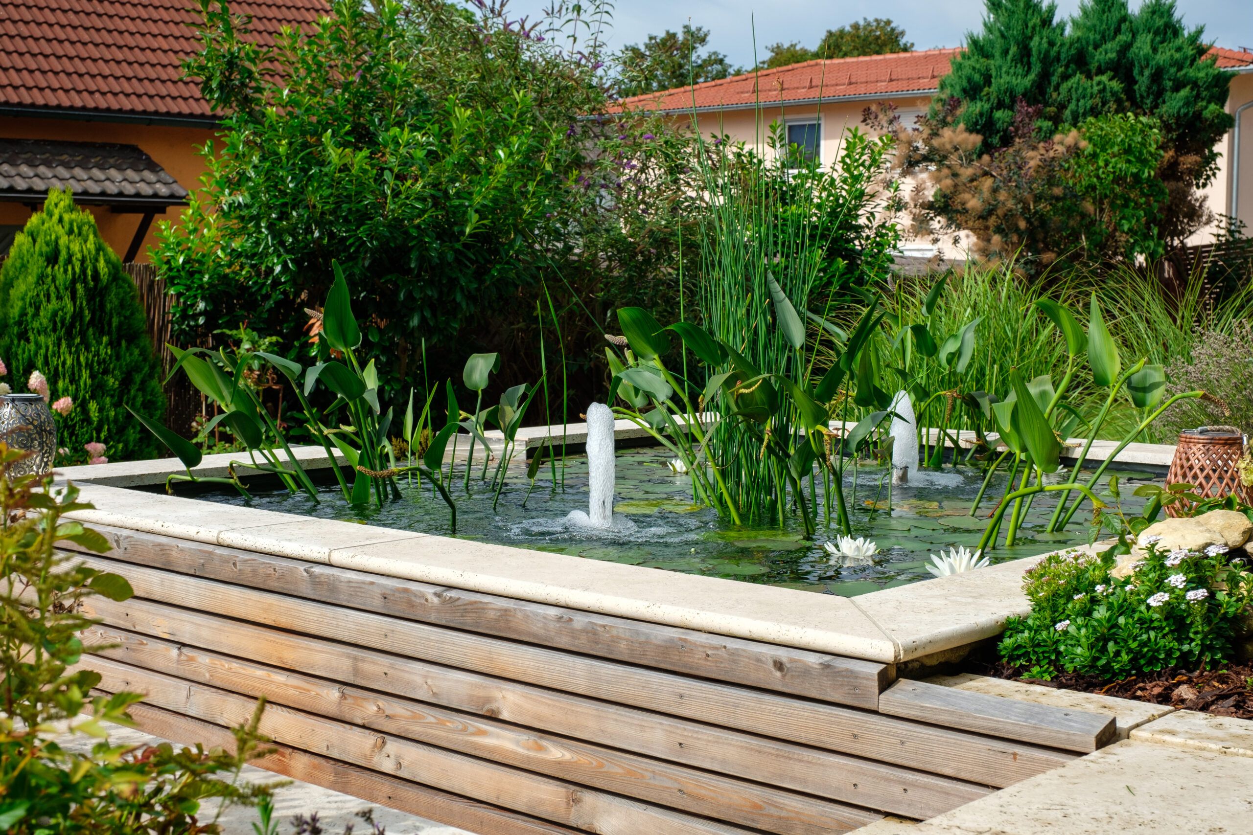 Ein Gartenteich oder kleiner Wasserbereich verwandelt den Außenraum in eine natürliche Wohlfühloase. Wasser fördert die Biodiversität, bietet Lebensraum für Pflanzen, Insekten und Vögel und stärkt das ökologische Gleichgewicht. Gleichzeitig sorgt das Plätschern für Ruhe und Entspannung – wie Urlaub im eigenen Garten.