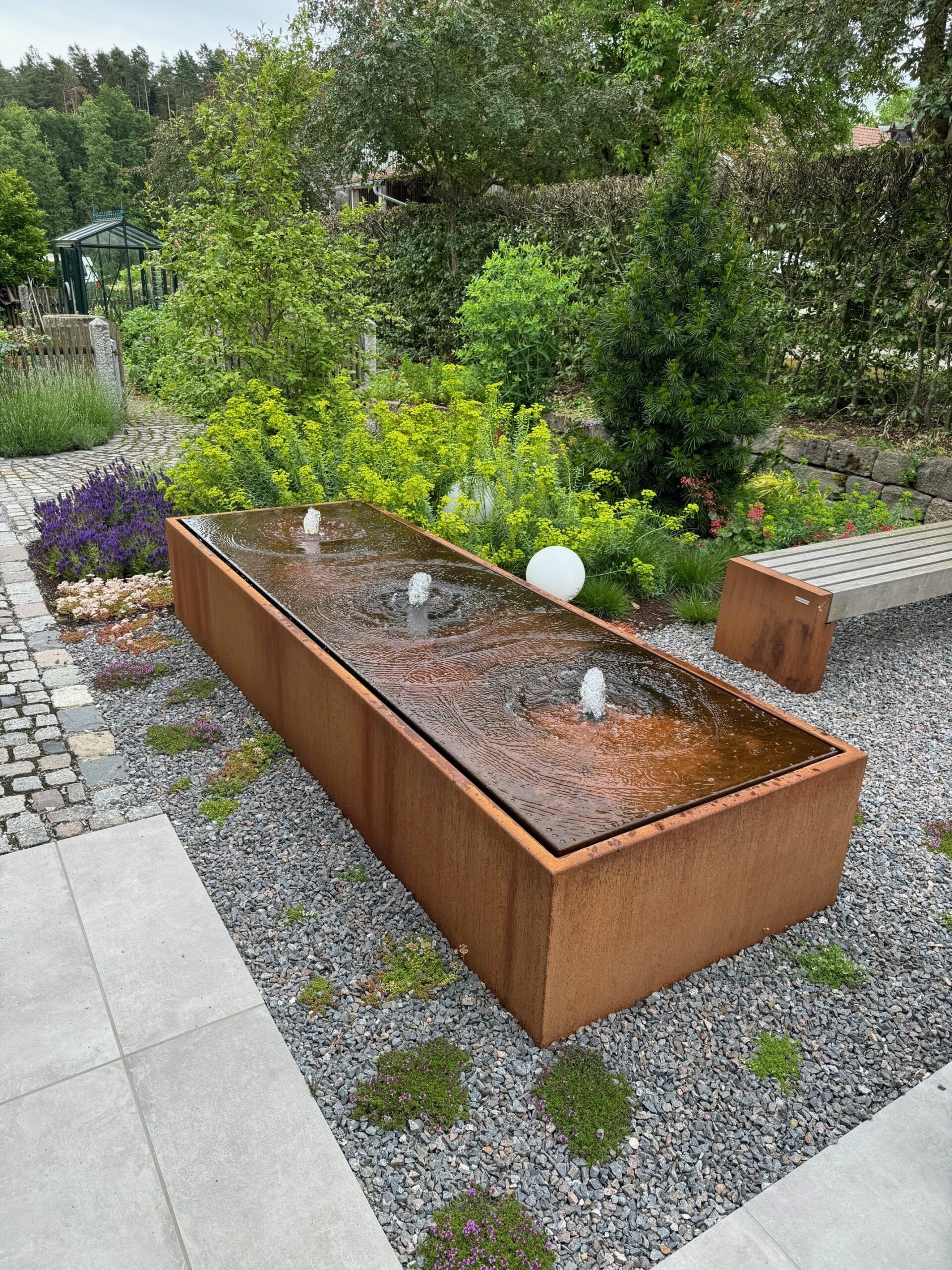 Wasserspiele sind zudem eine platzsparende und preisgünstige Alternative, um das Element Wasser auch auf kleineren Grundstücken zu genießen. Sie lassen sich flexibel planen und ideal mit einem Gartenteich kombinieren, sodass selbst kompakte Gärten zu echten Rückzugsorten werden – wie Urlaub zu Hause.