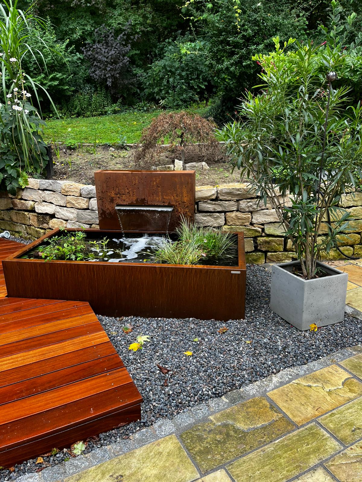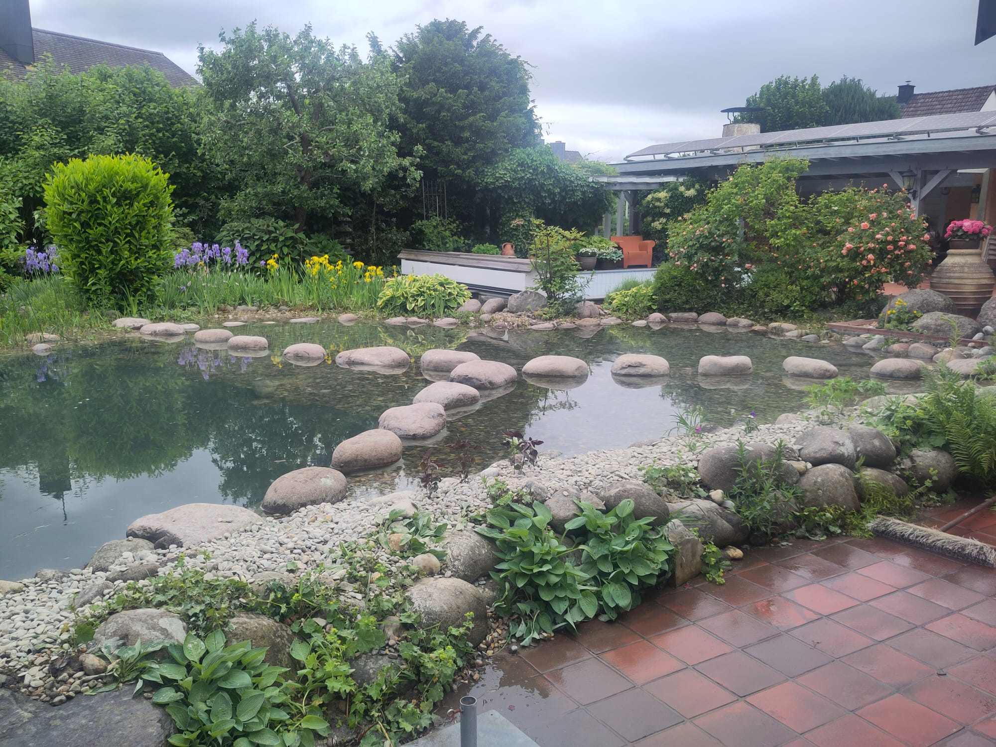 Wasser im Garten schafft genau das, was unser Firmenname „Garten ist Urlaub GmbH“ verspricht: ein Ort der Erholung, der Naturverbundenheit und der Entschleunigung. Ob Teich, Quellstein, Bachlauf oder modernes Wasserspiel – Wasserflächen verwandeln jeden Garten in eine persönliche Wohlfühloase und fördern gleichzeitig die Biodiversität.