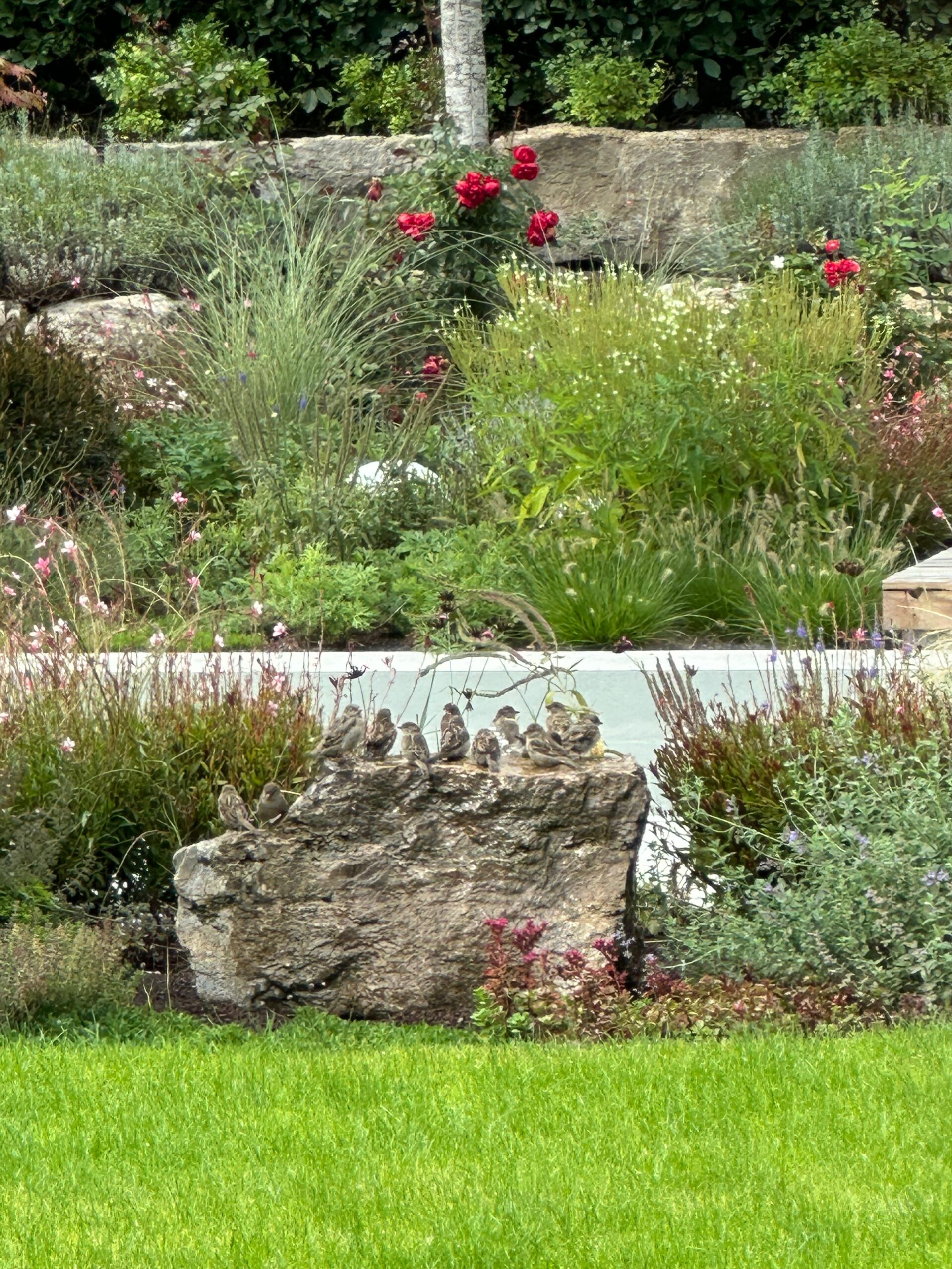 Das leise Plätschern eines Quellsteins oder Bachlaufs wirkt beruhigend und lädt zum Verweilen ein – besonders in der Nähe eines Sitzplatzes. Gleichzeitig zieht Wasser im Garten eine faszinierende Flora und Fauna an: Libellen, Vögel, nützliche Insekten und wasserliebende Pflanzen sorgen für ein lebendiges, natürliches Ökosystem.
