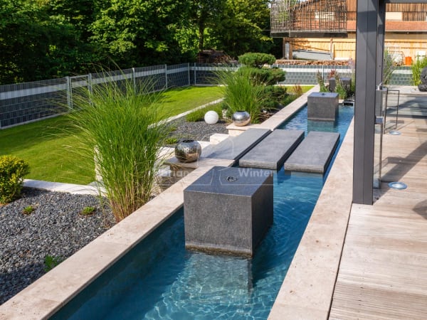 Quellsteine oder Bachläufe sind eine wunderschöne Möglichkeit den eigenen Garten aufzupeppen. Gerade in der Nähe eines Sitzplatzes im Garten wirkt das leise Plätschern des Wassers sehr beruhigend und geradezu entspannend auf die Menschen in deren Umgebung. Dadurch wird man zum Verweilen in der Nähe des Wasserspiels direkt eingeladen. Ebenso reizvoll an dieser Art von Wasser im Garten ist die vielfältige Flora und Fauna, die sich in kürzester Zeit am Wasser ansiedelt. Ein Wasserspiel ist eine preisgünstige und platzsparende Alternative das Element Wasser auch in relativ kleinen Grundstücken zu genießen. Zudem ist es möglich ein Wasserspiel in Kombination mit einem Gartenteich im Grundstück zu integrieren.